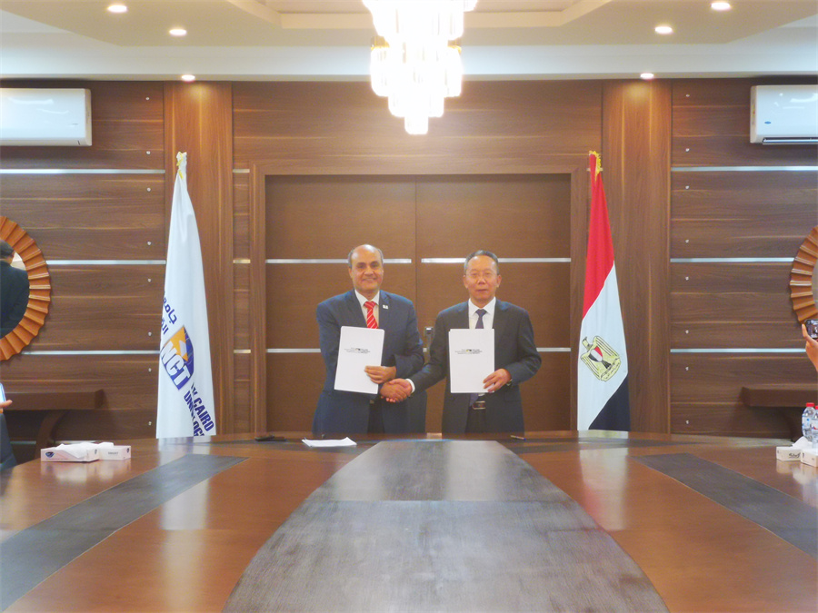 7月13日,代表团访问了埃及中国大学,与校长拉莎·艾尔可莉举行会谈,并举行两校《学术合作项目协议》签约仪式和项目揭牌仪式。任喜莹表示,两校自2021年签署《谅解备忘录》以来,围绕工程学科的教育教学合作、国际中文教育等领域进行了深入的合作沟通和路径探索。此次两校签署《学术合作项目协议》,更是深化伙伴关系、整合优质教育资源的关键举措,期待两校以此次访问为契机,持续深化两校的交流合作。艾尔可莉对双方近年来为项目落地付出努力的工作人员表示感谢。她说,该项目是双方迈向学术卓越、国际化发展和工程技术教育进步的重要步伐,希望两校不断激发创造力,取得更多合作成果。